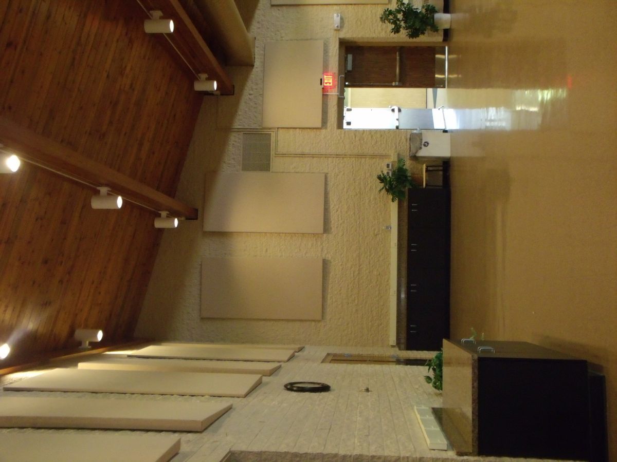 The room seats up to 120 people. We provide chairs, round tables, and rectangular tables and will arrange them how you choose.
